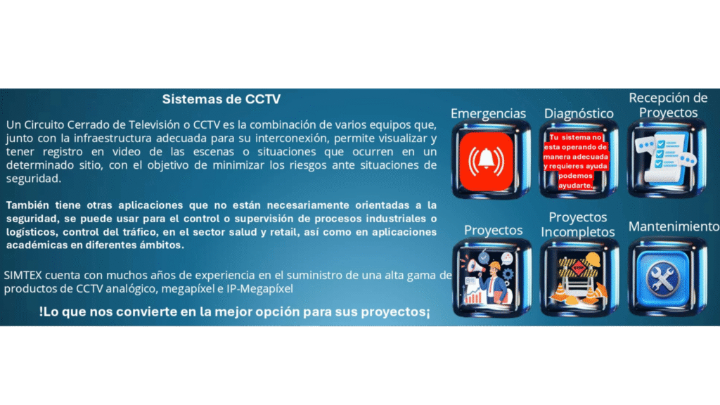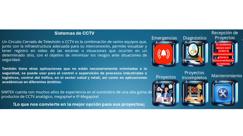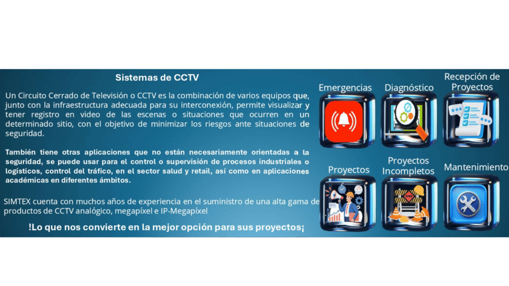 SIMTEX cuenta con muchos años de experiencia en el suministro de una alta gama de productos de CCTV analógico, megapíxel e IP-Megapíxel!Lo que nos convierte en la mejor opción para sus proyectos¡