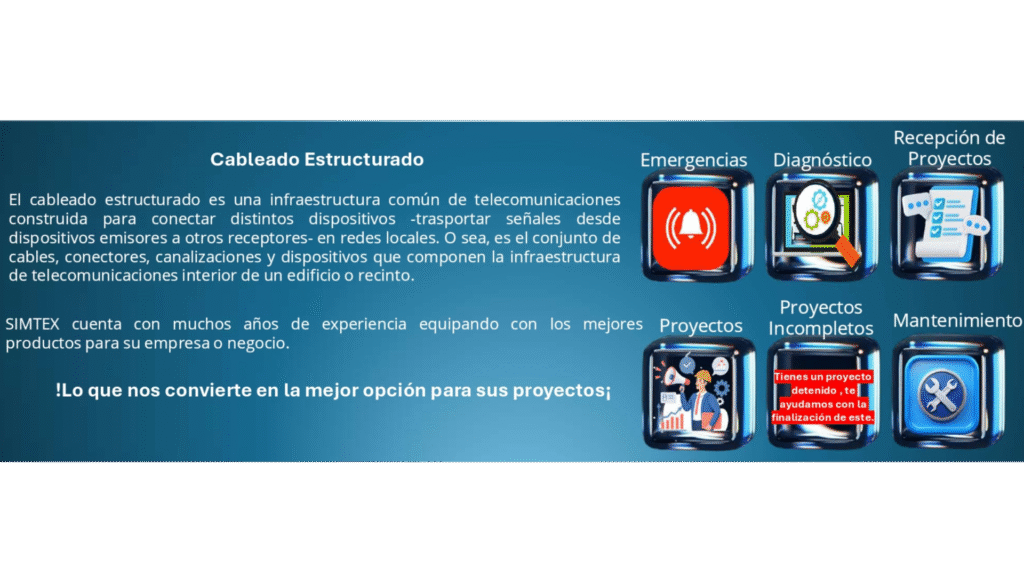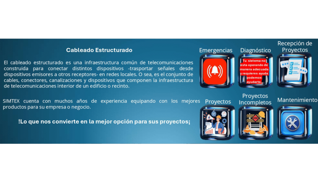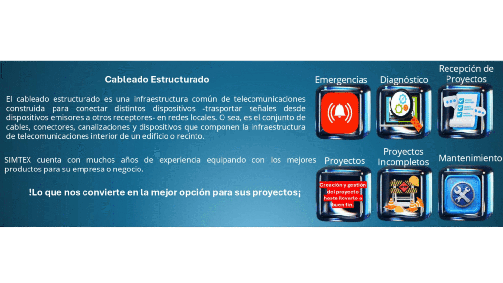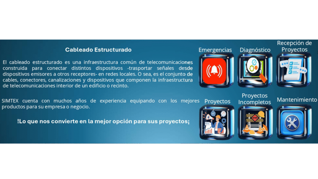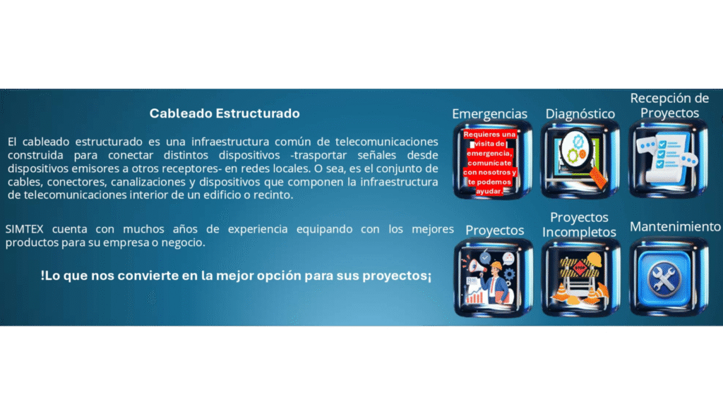 El cableado estructurado es una infraestructura común de telecomunicaciones construida para conectar distintos dispositivos -trasportar señales desde dispositivos emisores a otros receptores- en redes locales. O sea, es el conjunto de cables, conectores,canalizaciones y dispositivos que componen la infraestructura de telecomunicaciones interior de un edificio o recinto.